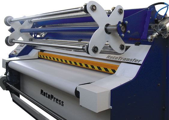 Prensa giratoria rototransfer rtt para planchar, lijar y la transferencia de foil en pieles y tejidos